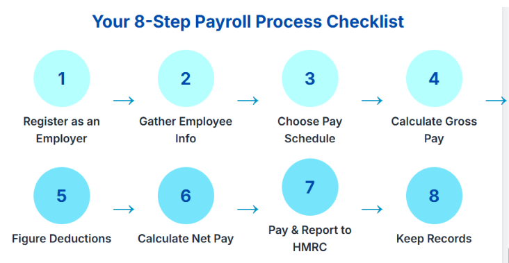 Before payroll can run smoothly, you’ll need the right employee details. That means their full name, National Insurance number, and current tax code (found on a P45 or HMRC starter checklist). Storing this information is not about organization; it is a legal responsibility under UK data protection rules. New employees must be told how their information will be used and who it will be shared with. These records need to be kept for at least three years in case HMRC decides to carry out an inspection. For SMEs, careful setup saves headaches later. Whether you are running payroll through a simple payroll system for startups or outsourcing specialists, getting these first steps right is the foundation of reliable payroll management for small businesses.